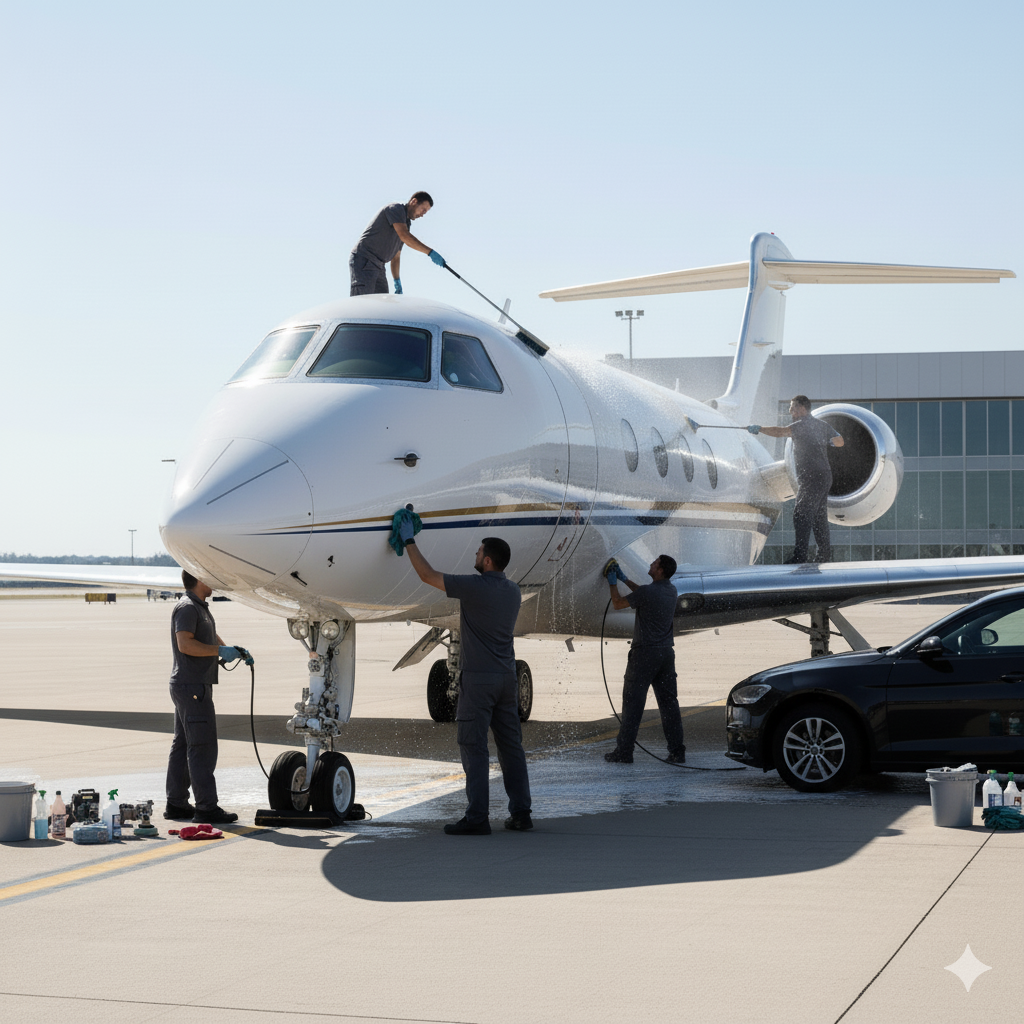 Paint Protection & Ceramic Coatings – Long-lasting gloss and barrier against weather, bird droppings, and jet fuel residue.
